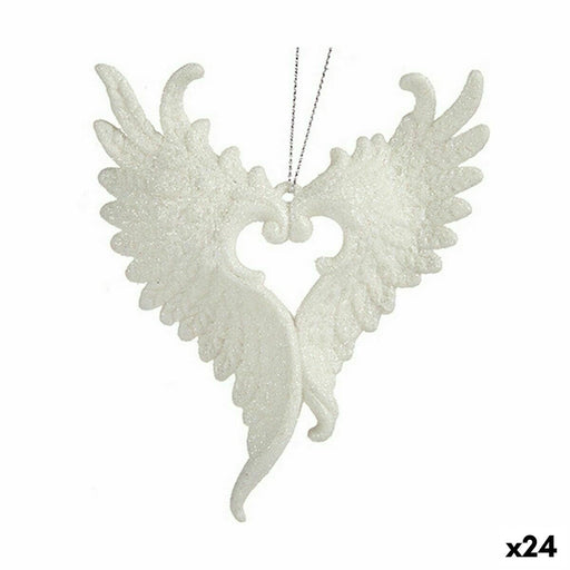 Christmas bauble Krist+ White Plastic Glitter Angel Wings 12 x 13 x 2,5 cm (24 Units)