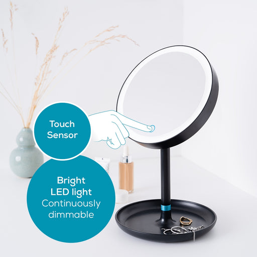 Beurer BS 47 Illuminated cosmetics mirror with practical magnetic holder, touch-sensor, 3 different light options, 3 adjustable light intensities, Extra-large mirror surface - 21 cm, Bright LED light with 33 LEDs